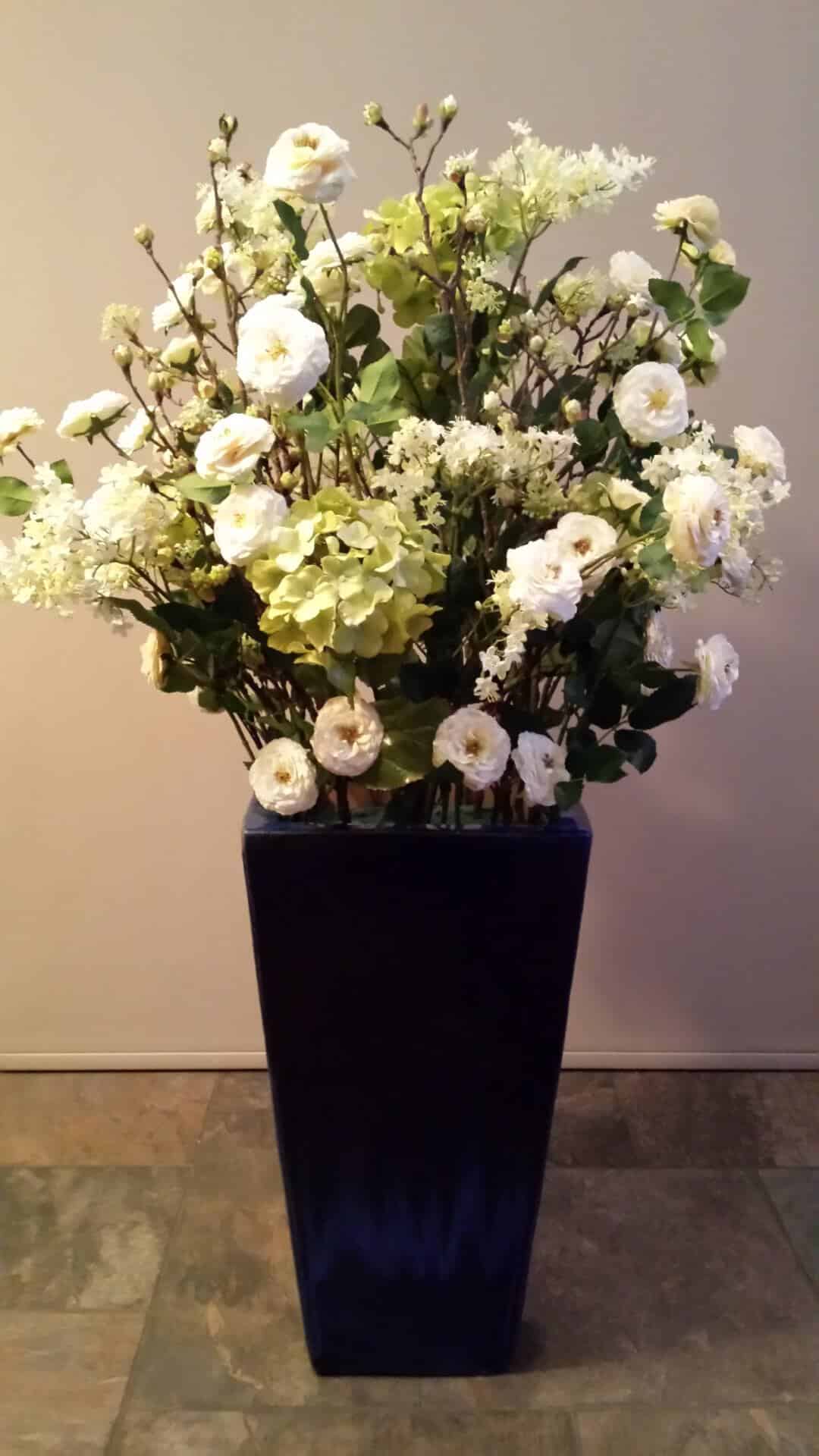 Zijden bedrijfsbloemstukken huren. De huurprijs is afhankelijk van de grootte en het aantal wisselingen van het zijden bloemstuk.